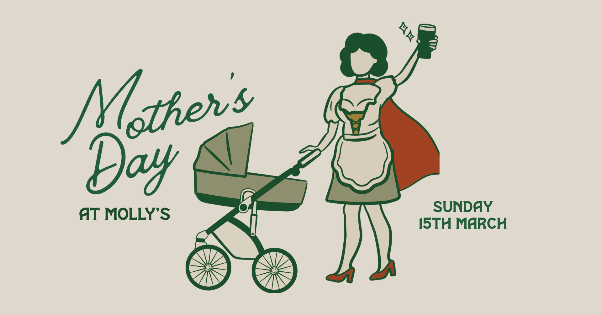 Book in for Sunday Roast and Mum receives a complimentary glass of bubbles or a pint on arrival. Choose from Roast Chicken or Roast Beef, served with all the trimmings, alongside our full standard menu.